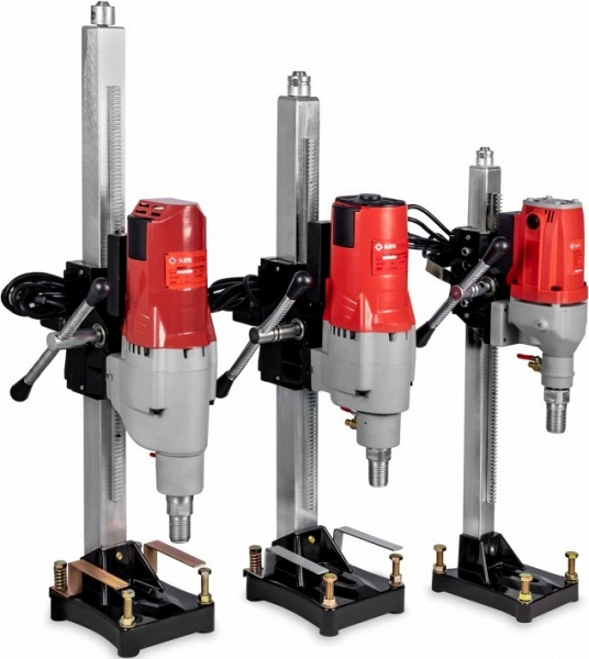 Установка алмазного бурения Ken 6130N (Кен 6130Н) предназначена для сверления отверстий Ø 10 – 130 мм в бетоне, железобетоне, камне, кирпиче и других строительных материалах, вертикально под углом 90°, с подачей и без подачи воды, при прокладке коммуникаций.