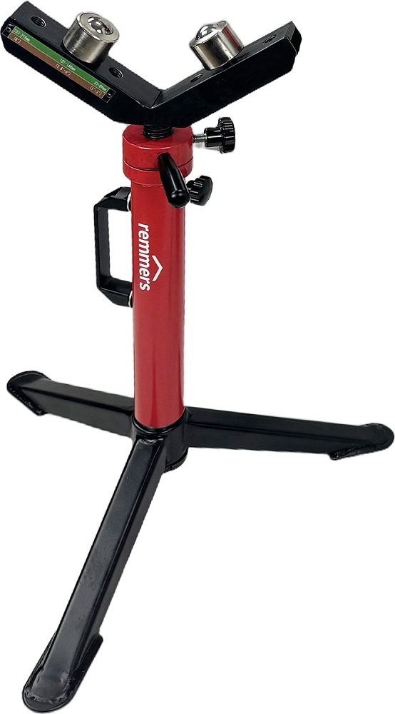 V-образная регулируемая роликовая трубная опора Remmers Triton 1-8 (Реммерс Тритон 1-8) предназначена для работы с трубами Ø 25 – 200 мм (1" – 8"). Широко используется при сварке тяжелых, фасонных, твердых и круглых труб; для поддержки труб во время накатывания желобков, нарезания резьбы, резки, снятия фаски, вырезания отверстий и т.д.